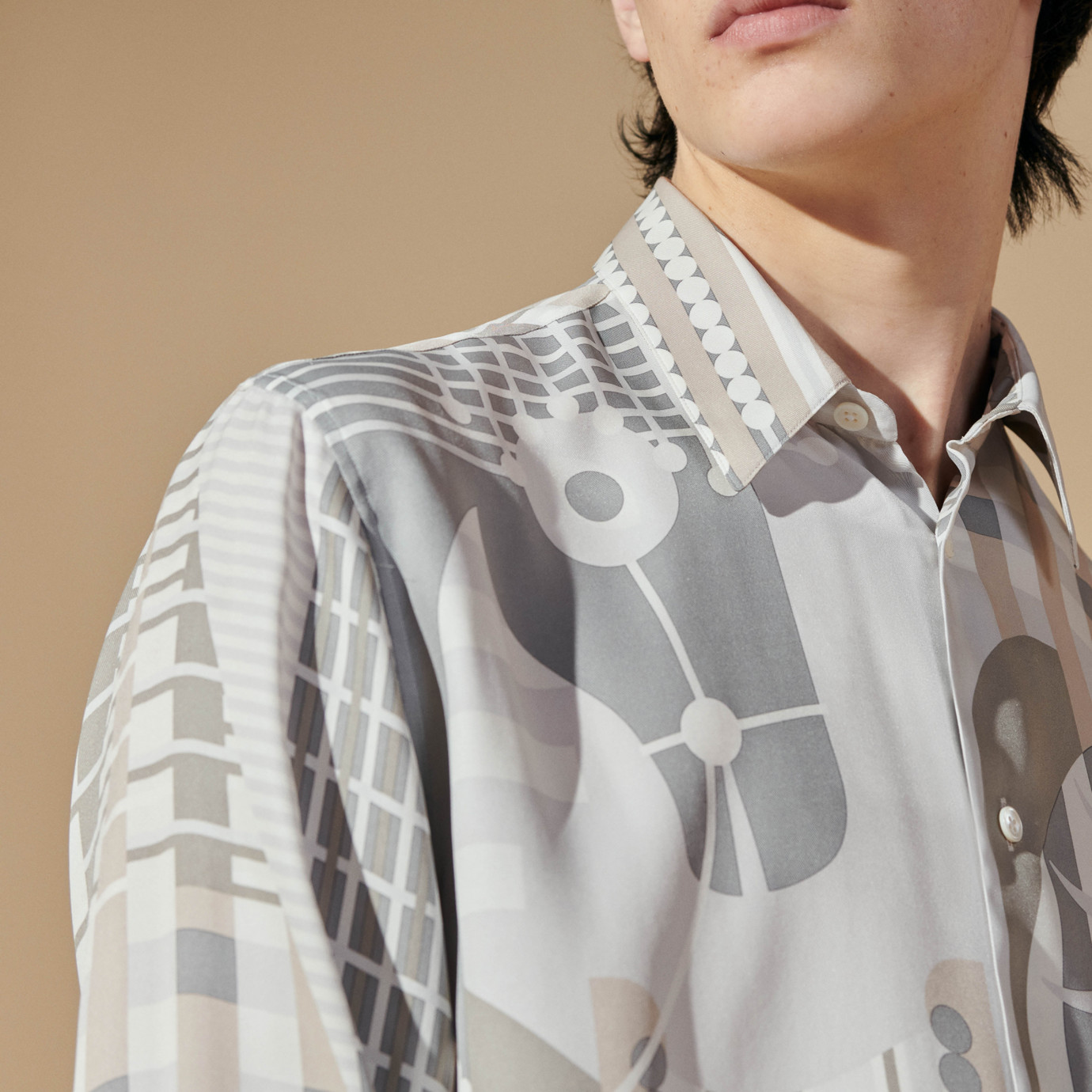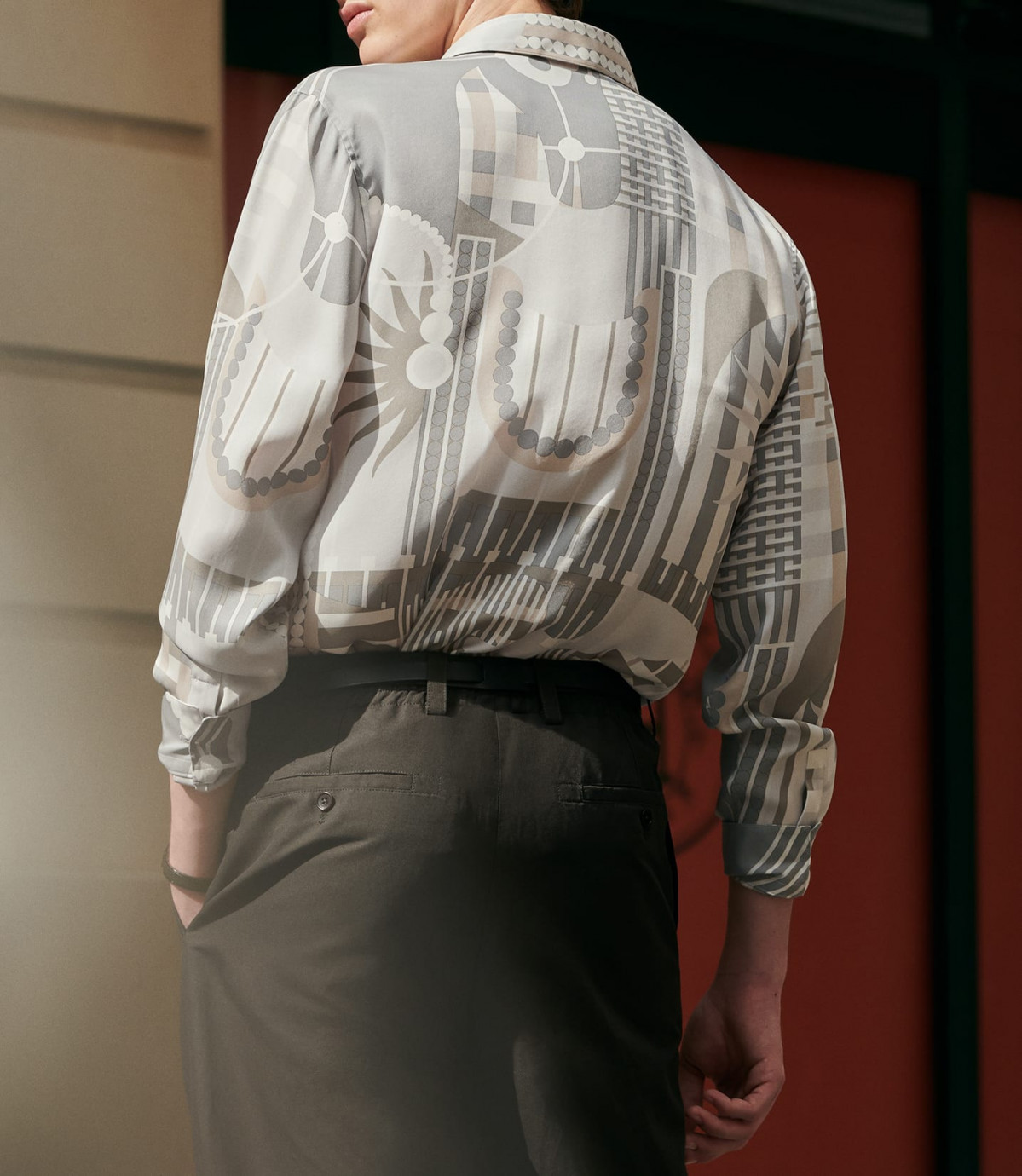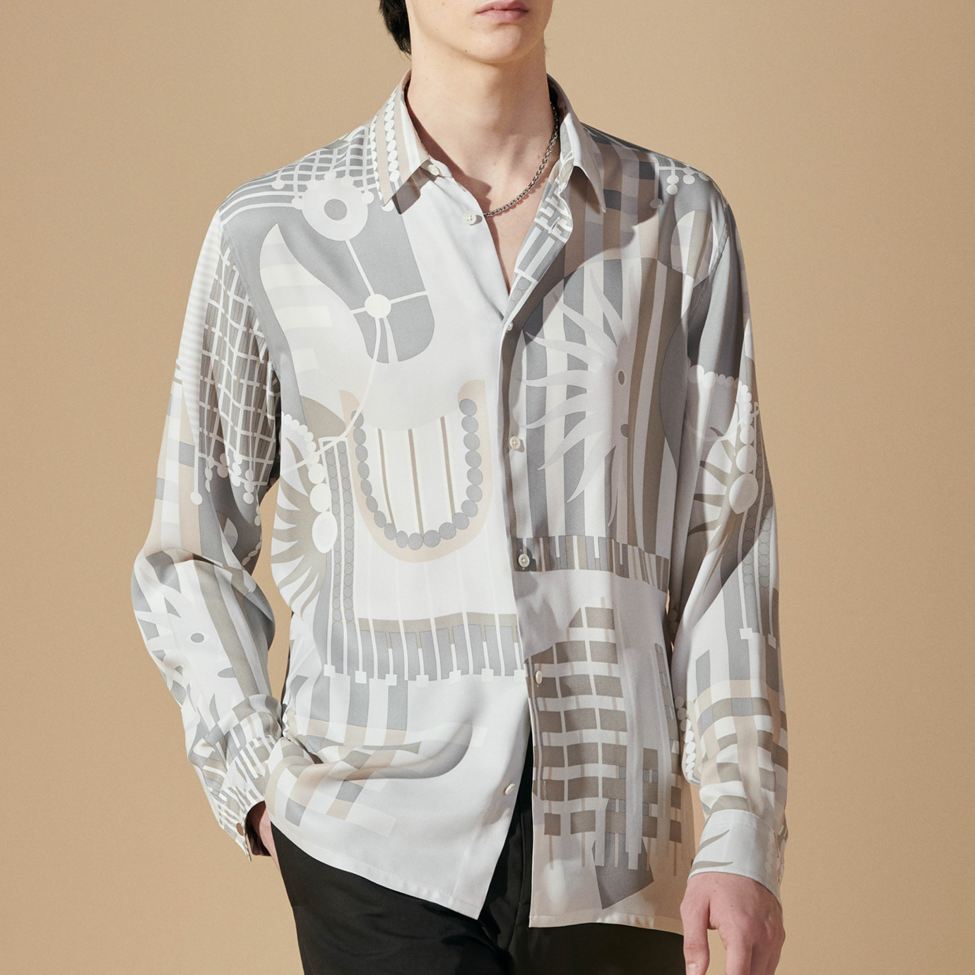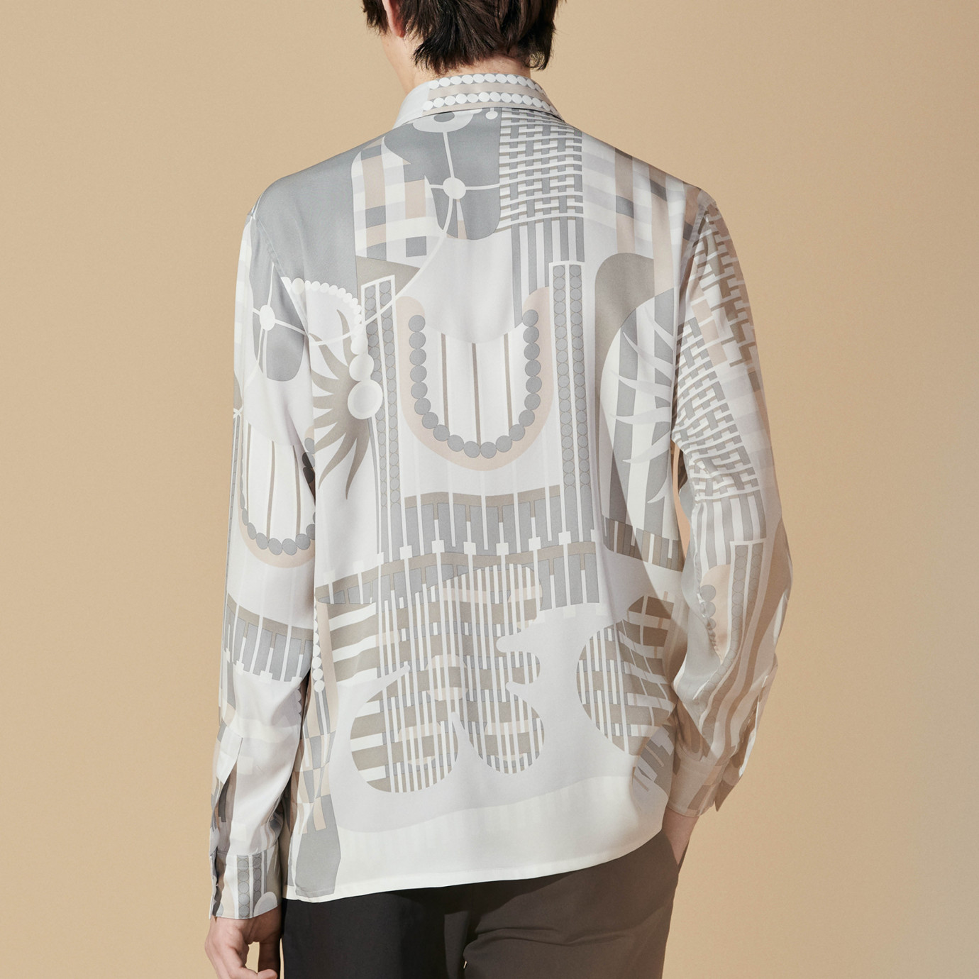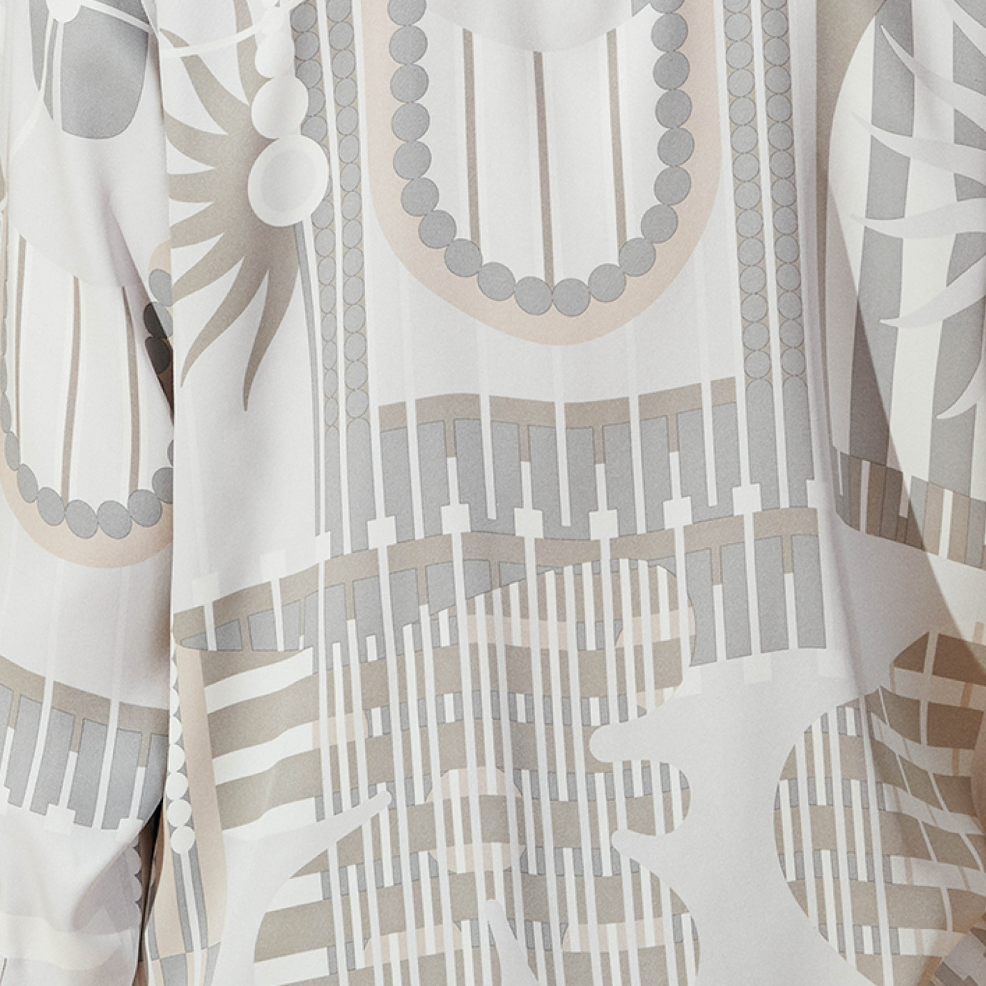 Used in the Spring-Summer 2024 collection, in this design created for Hermès, the horse merges with its square-format finery, incredibly rich in graphic motifs. The drawing is inspired by both the horse finery of the Middle Ages and the traditional festival of 19 March in Scicli (Italy), the Cavalcata of S.Giuseppe. Horses parade through the town completely hidden inside harnesses decorated with thousands of wallflowers.