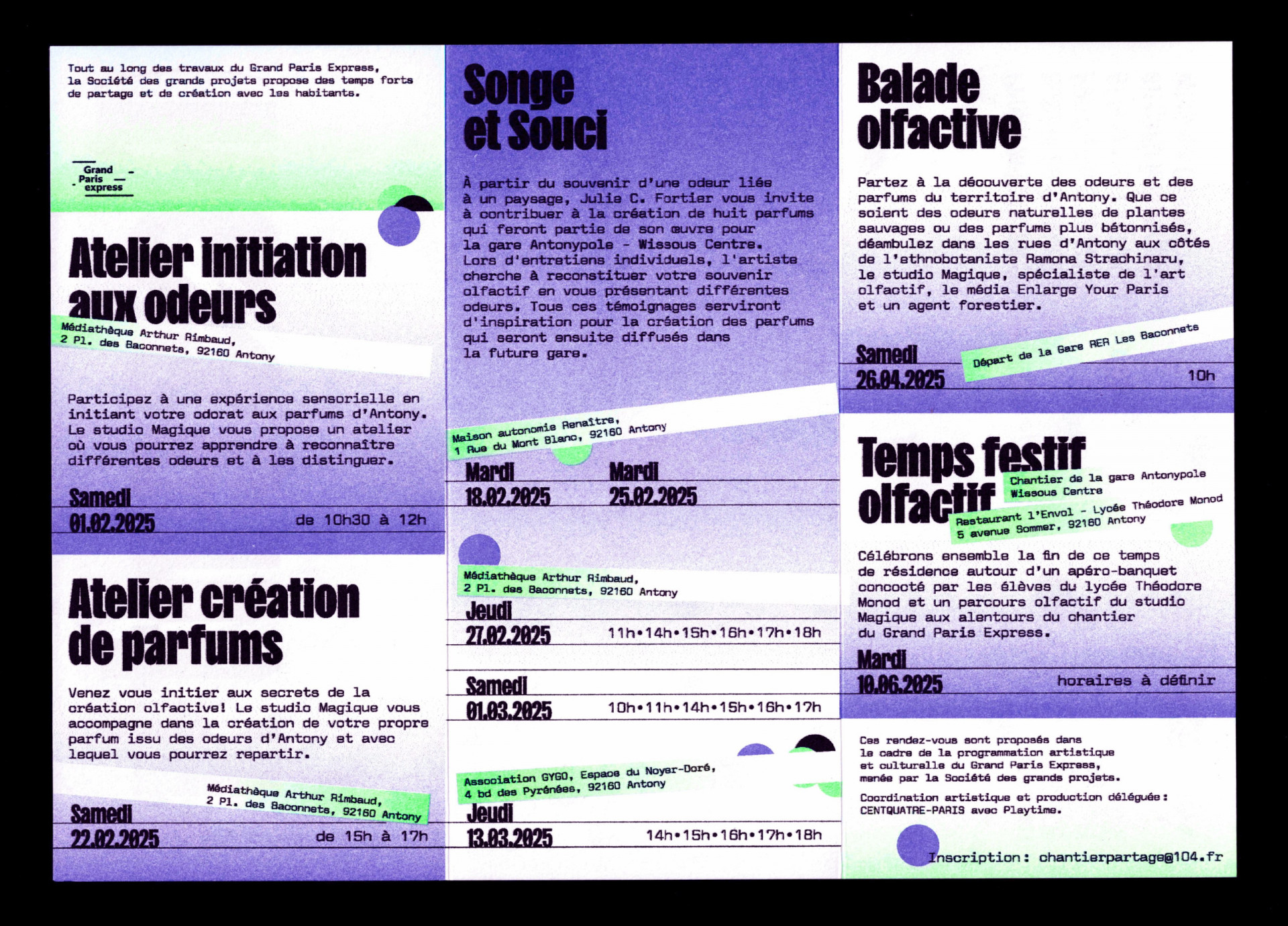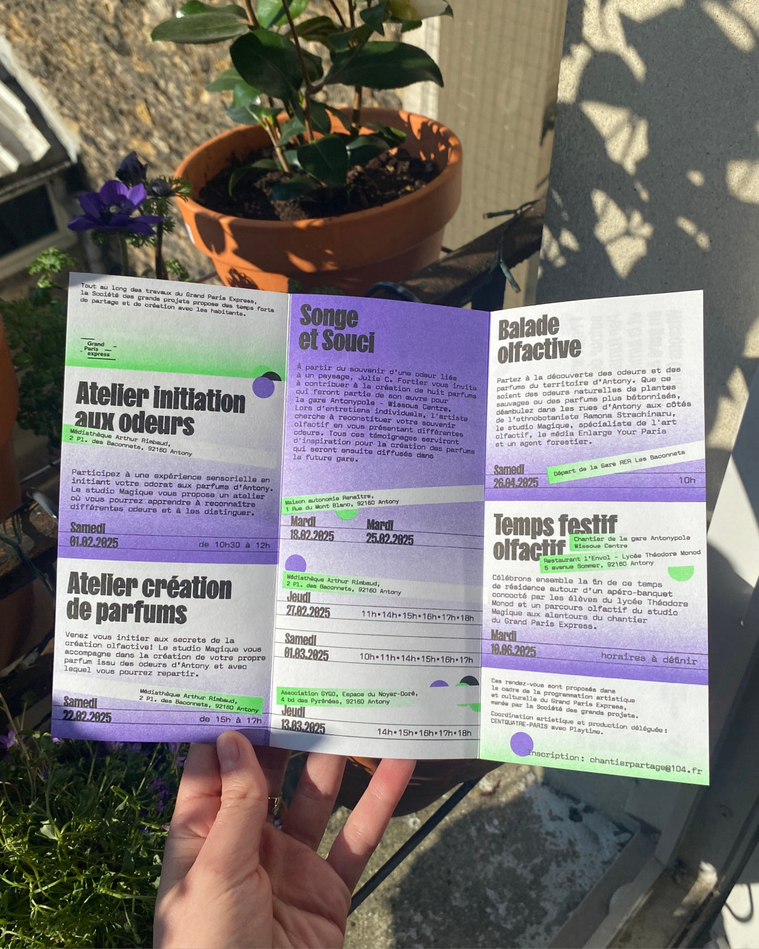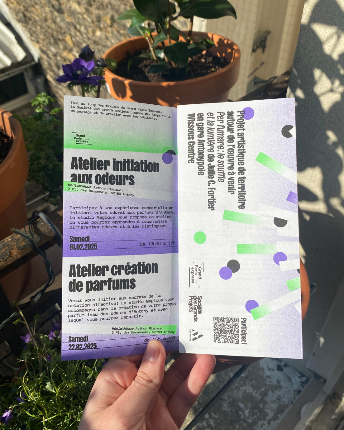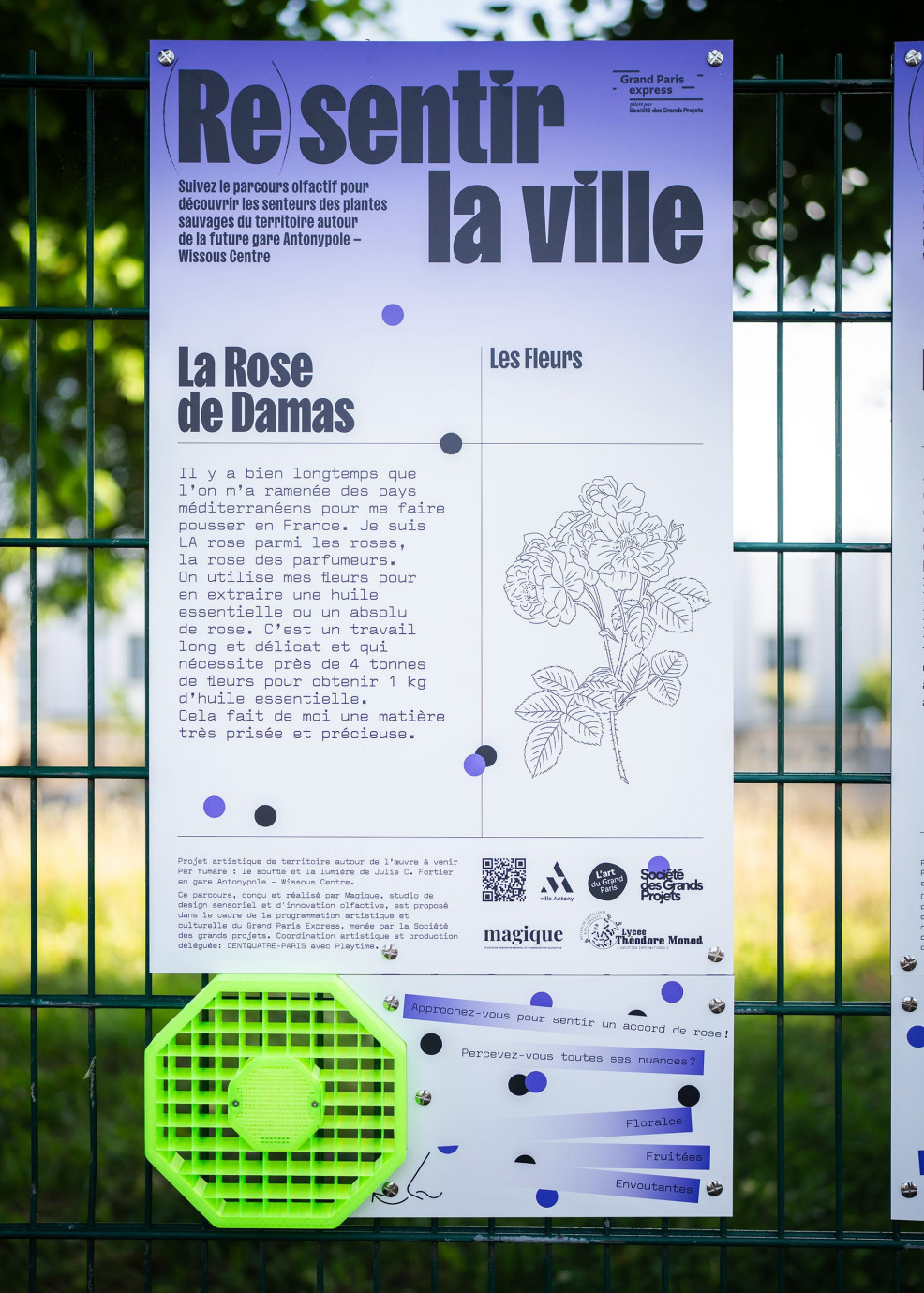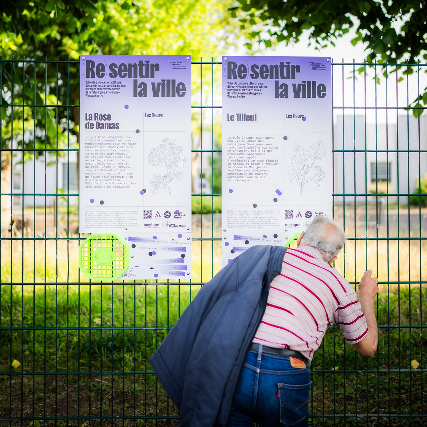 Creation of the graphic identity for the (Re)sentir event, which offers a number of artistic and olfactory events in Antony, as part of the Grand Paris Express project.