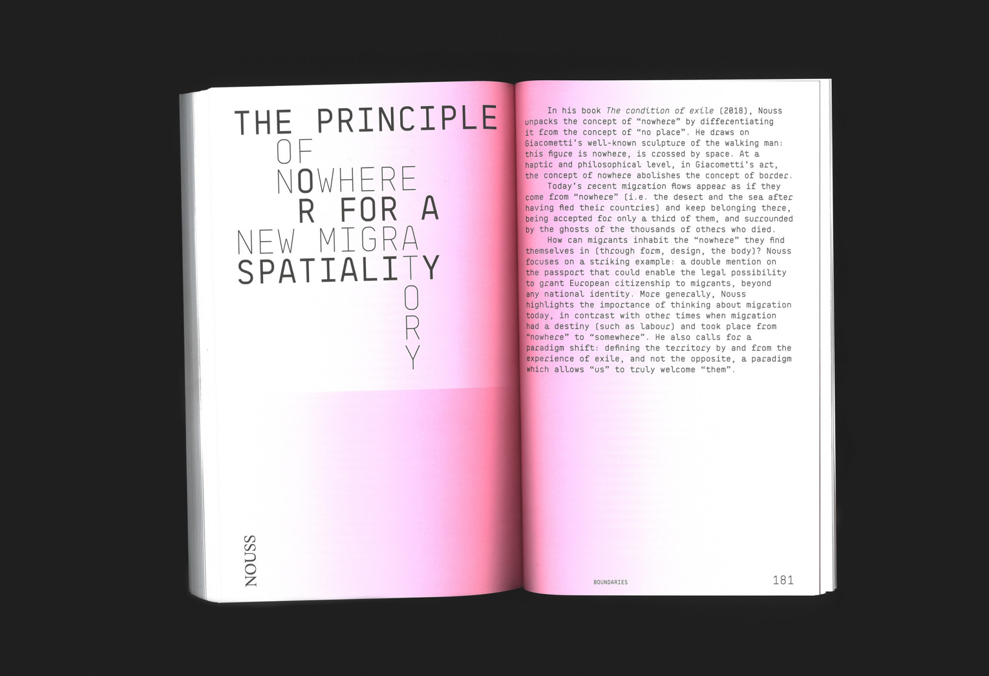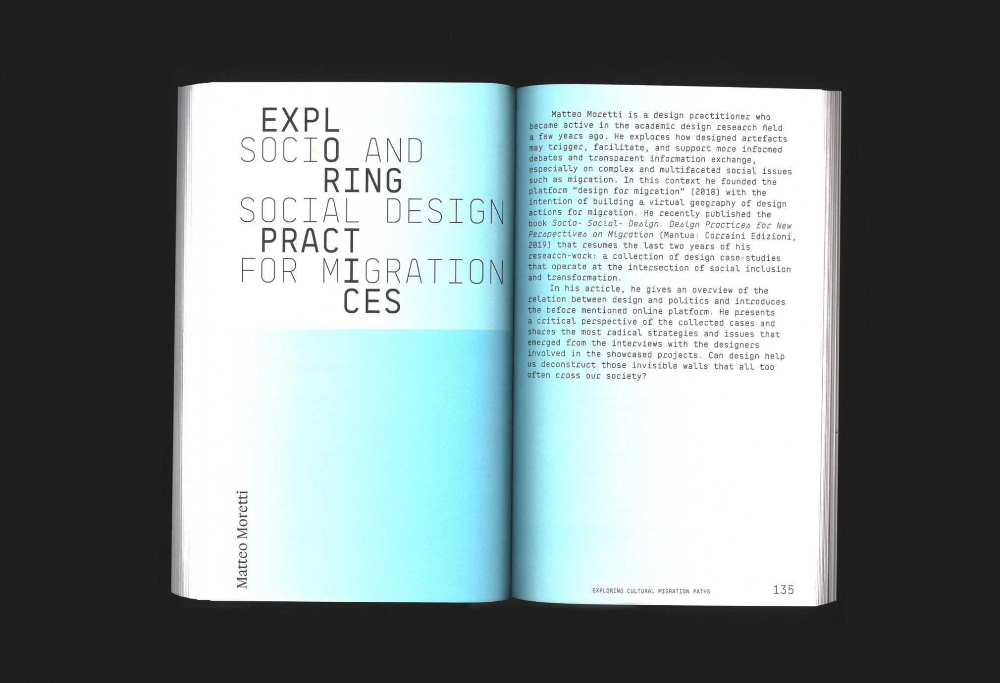 It gathers the ideas, actions and perspectives of heterogeneous profiles, including design studios, thinkers, architects, activists, artists and philosophers, all of them involved in the perspective of more sustainable futures and particularly in the framework of past and present migration.