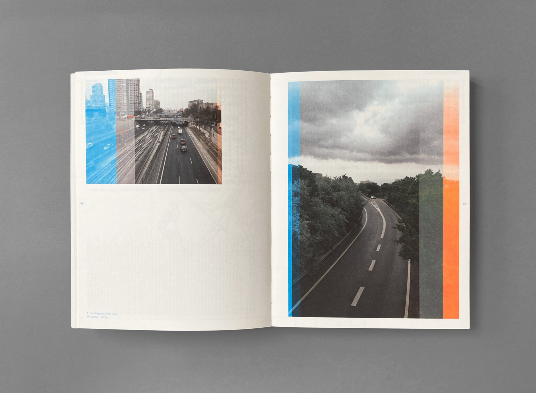 The entire four-color process of the book was modified, with fluo blue and fluo red pantone, highlighting the agency’s working strategy and giving the book a singular tone.